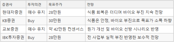 👉 핵심 키워드: 저평가 리스크/바이오 회복 모멘텀/해외 비비고 성장